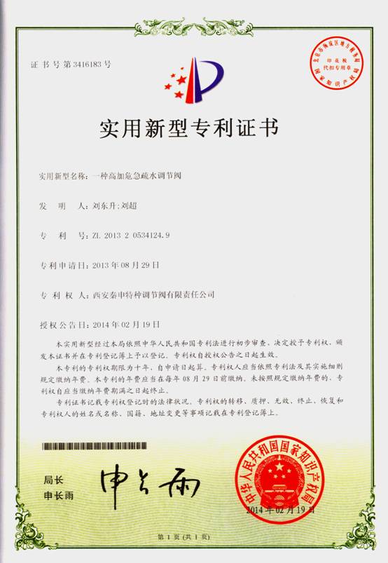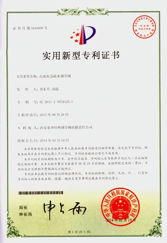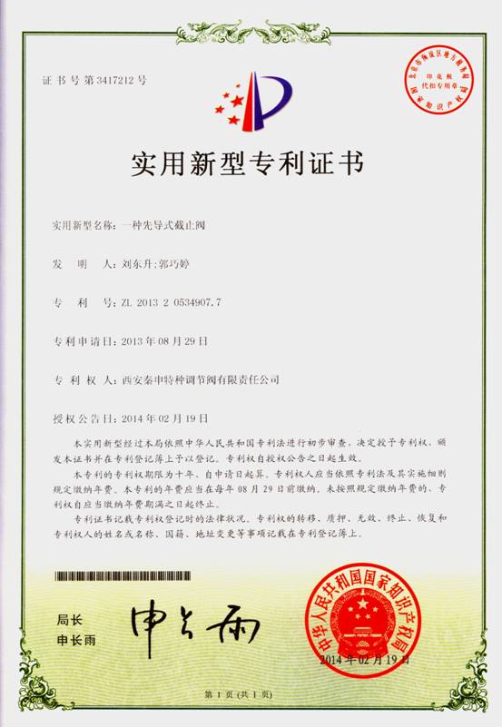 同(tong)時,公司注重(zhòng)對自主知識(shí)産權的保護(hù),截至目前,我(wo)公司有實用(yong)新型專利證(zhèng)書11項,發明專(zhuān)利1項。産品專(zhuān)利的持續獲(huò)得,标志着🈲公(gong)司科技實力(lì)和核心競争(zheng)力在穩步提(ti)升,有利于公(gong)司形成持續(xù)創新機制,充(chong)分發揮公司(si)在行業内的(de)技術領先優(you)勢,進一步确(què)立“秦申”品牌(pai)在國内調節(jiē)閥市場的地(di)位。